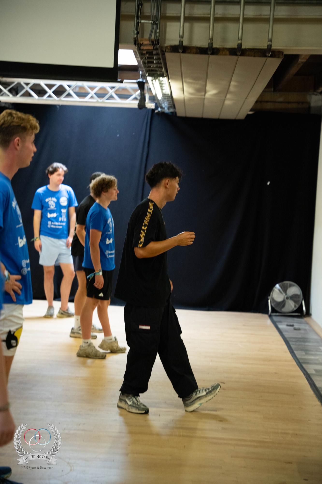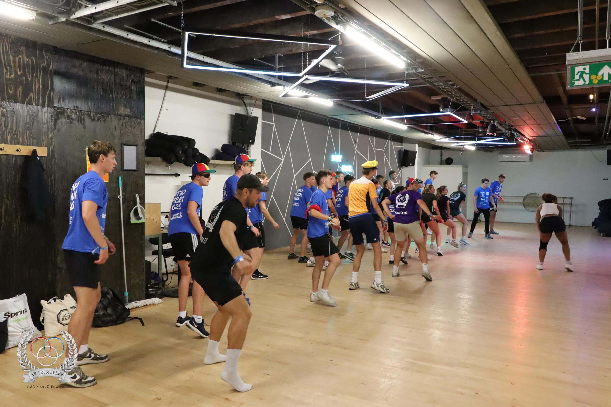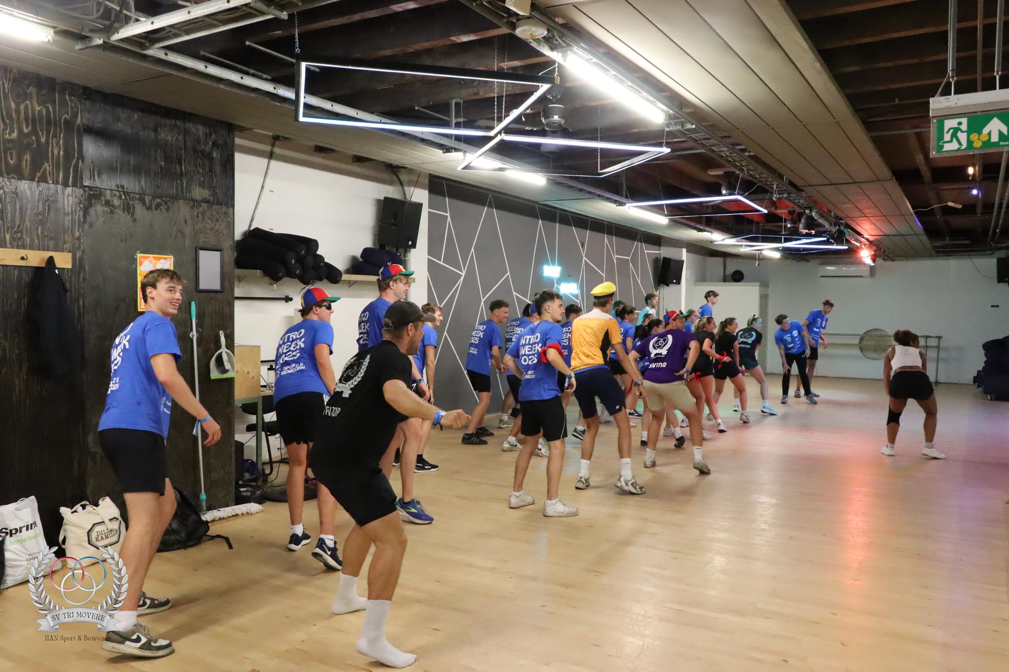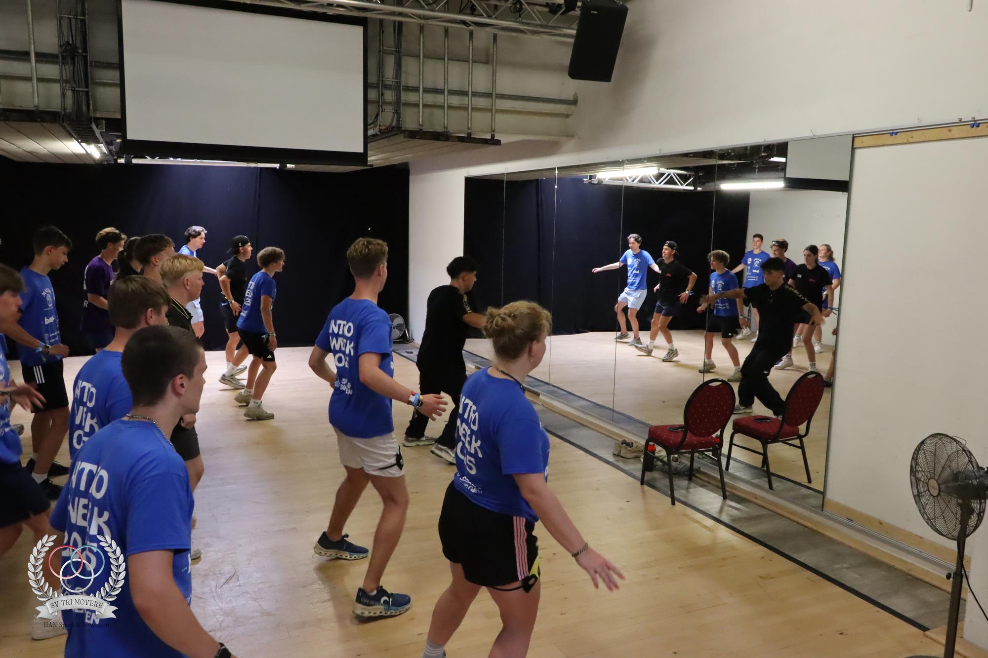 'Het wordt me weer een avondje vannacht, vannacht! Tri Movere heerst met al haar praal en pracht. De waalstad komen wij vandaan, we zijn niet te verslaan. Tri Movere, ALTIJD BOVEN AAN!'